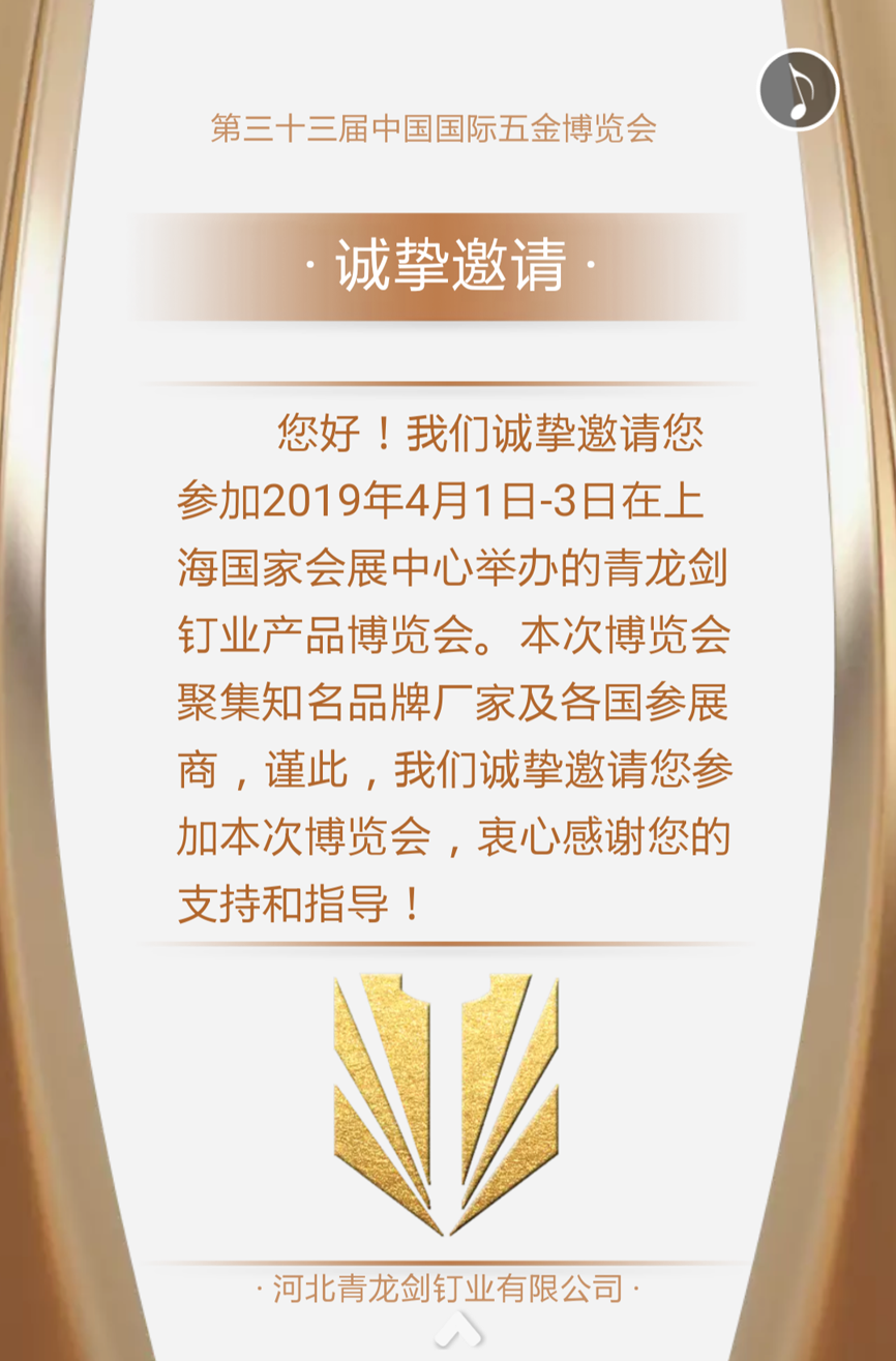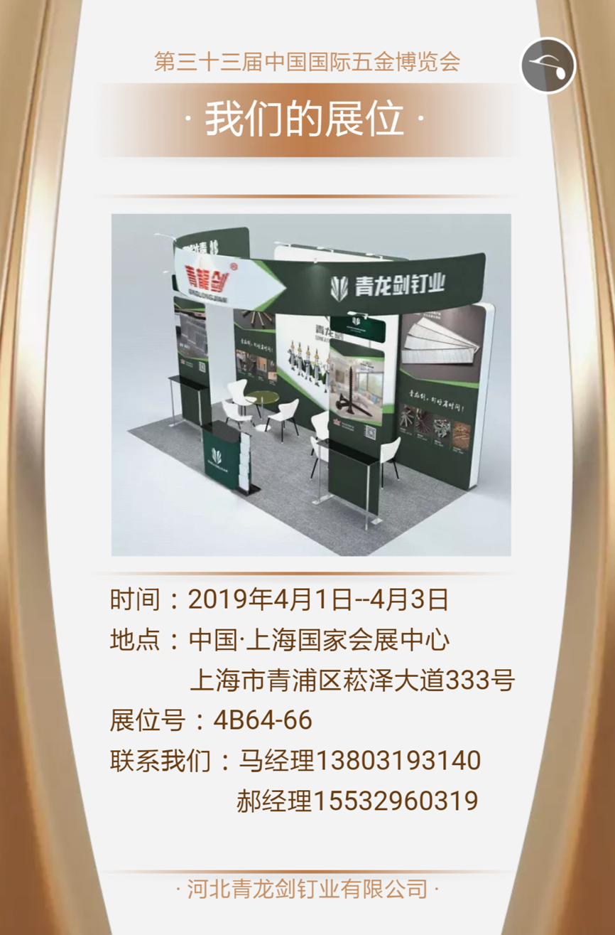 青龍劍釘業(yè)--第三十三屆中國(guó)國(guó)際五金博覽會(huì)邀請(qǐng)
