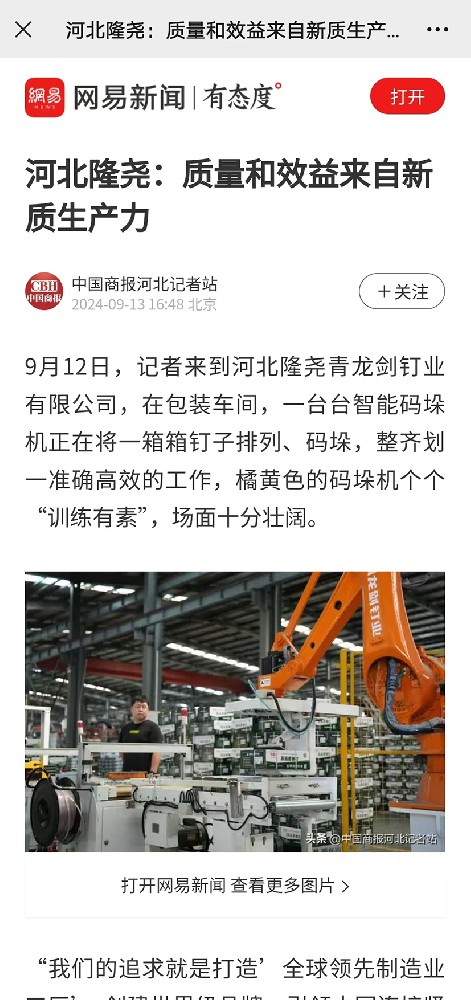 近日,中國商報河北記者站記者來到青龍劍公司,公司總經理馬群澤及相關工作人員,接受了記者的采訪,記者詳細了解了公司的發展方向及公司生產規模,并參觀了生產現場。