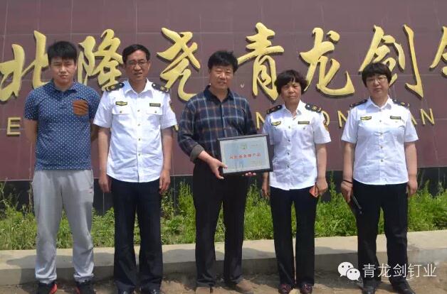 2015年5月8日隆堯縣質監局局長張志霞在張彥國書記、盧艷玲科長等領導的陪同下蒞臨青龍劍釘業指導工作并舉行“河北省名牌產品”授牌儀式,張局長對青龍劍釘業取得的成績給予高度的評價,同時提出企業要不斷加強質量工作,大力推進管理創新和品牌建設,增強質量安全意識和誠信意識,不斷提升企業產品的市場競爭力。