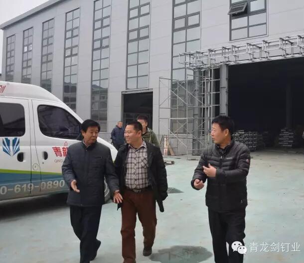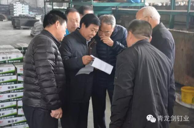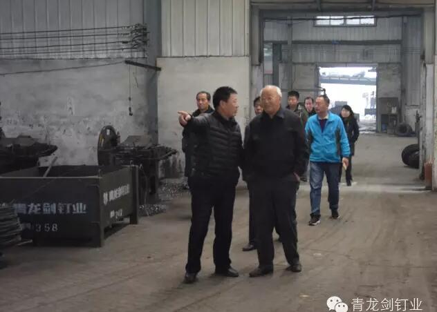 劉秘書長一行先后視察了青龍劍釘業(yè)拔絲制釘車間、熱處理車間、表面處理車間、污水處理車間、排釘車間、包裝車間和在建的多功能倉庫。