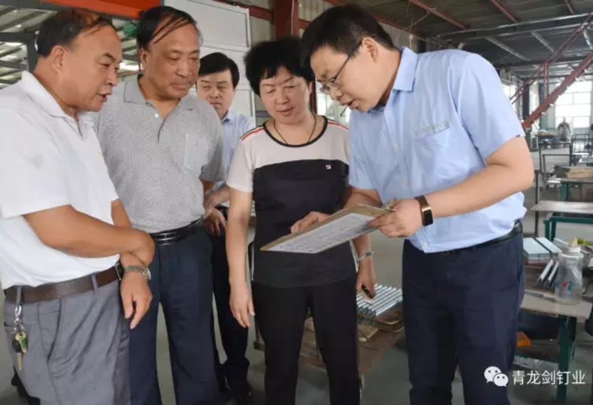 7月25日上午,隆堯縣工經聯領導焦景芬、王占堂、胡濟南、張智一行蒞臨隆堯魏莊五金制品協會企業。為調研協會企業情況、指導協會工作蒞臨來訪。魏家莊鎮書記王秀峰、鎮長成英峰、協會會長張志山及協會工作人員陪同參與。青龍劍釘業總經理、協會副秘書長馬群澤陪同參觀講解。