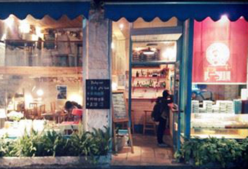 全白色粉刷、黑色店名超顯眼、黑色門框+玻璃、棒!