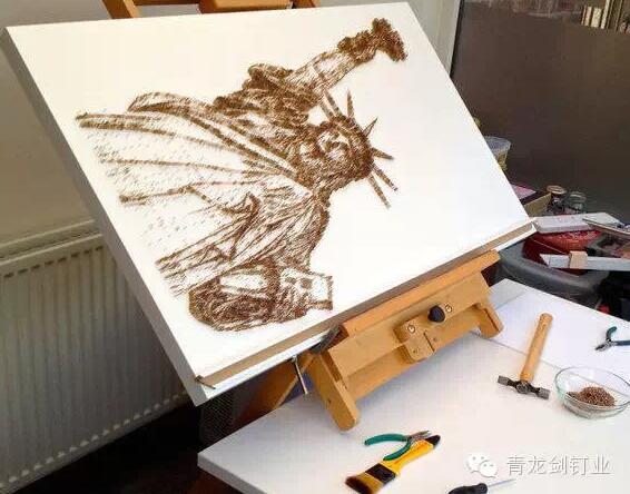 英國沃靈頓市的一名52歲的藝術(shù)家用錘子和釘子制作出了一幅幅美麗的名人肖像,其中包括瑪麗蓮·夢露、“披頭士”,甚至是英國女王。